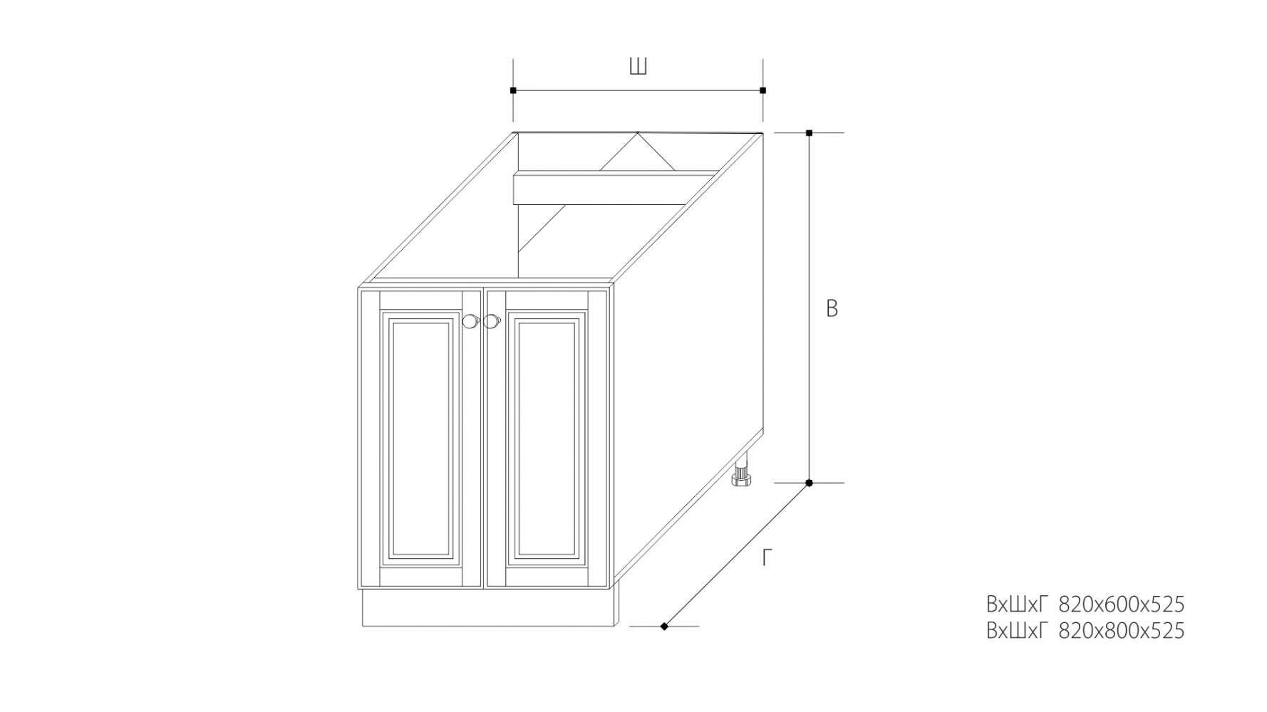 ВхШхГ: 820х800х525 мм.